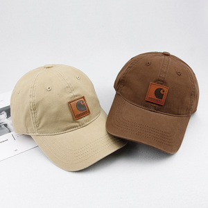 皮标棒球帽刺绣魔术贴帆布软顶水洗复古弯沿帽欧美工装学生情侣帽