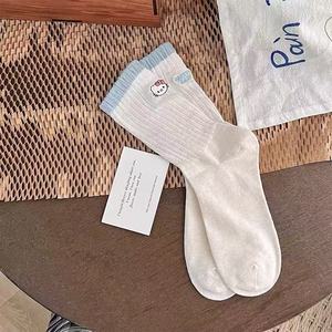 2025秋季新品 韩版ins风刺绣蝴蝶结猫咪AB款字母刺绣棉质中筒袜