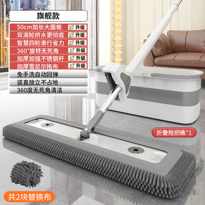雪尼尔免手洗平板拖把加厚木地板魔术长毛墩布大号带桶拖布一拖净