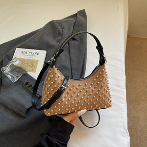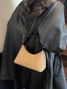 跨境外贸时尚珍珠百搭水桶包高级感单肩女包时尚斜挎包休闲腋下包