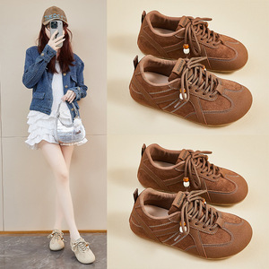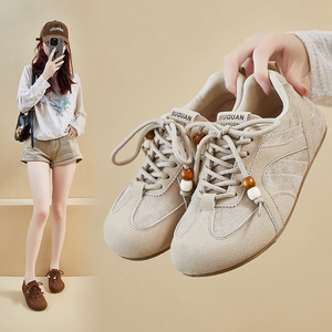 2025新款韩版德训鞋板鞋女秋季复古韩系串珠配饰休闲鞋增高K3911