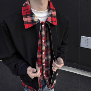 老钱风假两件外套男2025春秋新款拼接撞色宽松cleanfit飞行服夹克