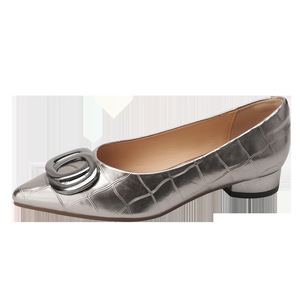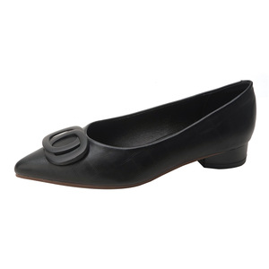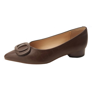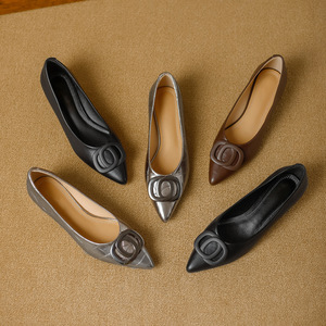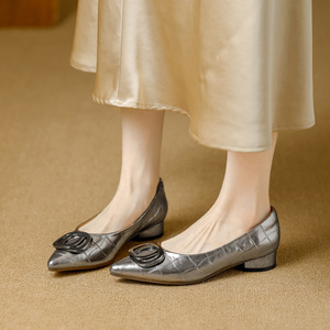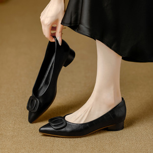 法式尖头浅口低跟单鞋女2025春秋新款气质优雅一脚蹬通勤工作鞋子