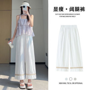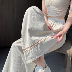 2025新款百搭高腰垂感九分直筒裤运动长裤子花边阔腿裤女夏季薄款