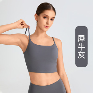 跨境新款无痕美背运动内衣瑜伽健身防震文胸吊带外穿一体杯带胸垫