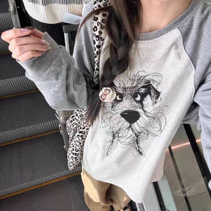 2025秋季新款东大门慵懒撞色狗狗印花长袖T恤女装甜美长袖打底衫