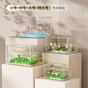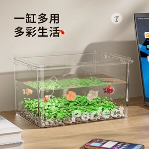 透明仿玻璃鱼缸小型桌面家用办公室金鱼小龟迷你方形亚克力水缸