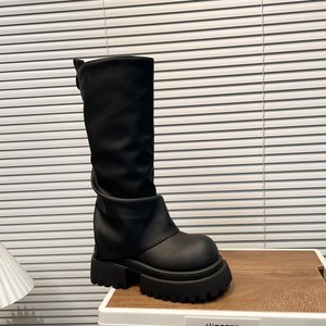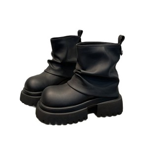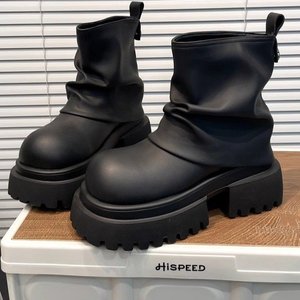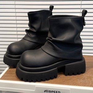 正当时髦季~韩版厚底粗跟褶皱裤管靴女堆堆靴2025秋冬增高ins短靴