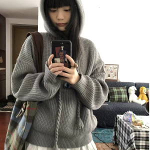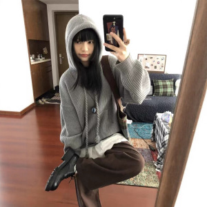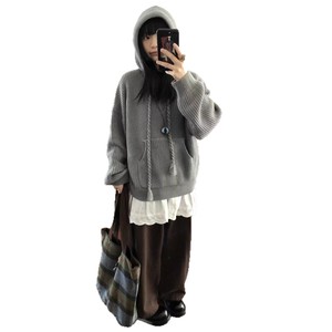 软糯系连帽针织卫衣女早秋俏皮活泼今年流行外套白色均码灰色欧美
