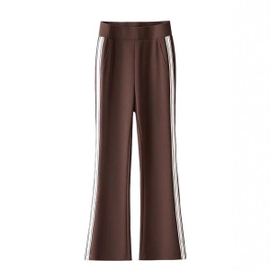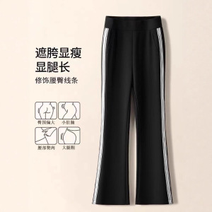 微喇裤女春秋2025新款宽松休闲运动裤子高腰咖色侧条纹西装喇叭裤