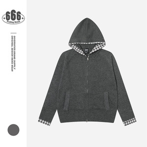 TaelePlus复古拼接格纹针织毛衣男女帽衫秋冬连帽外套针织衫TP274
