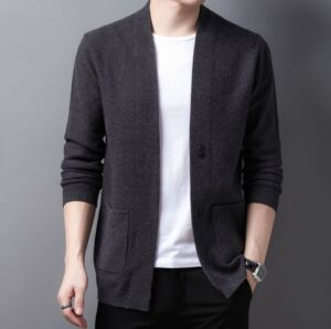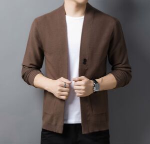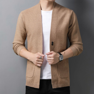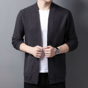 外贸直播针织衫男款秋季新款青年潮牌休闲口袋开衫外套针织上衣男