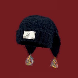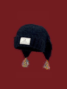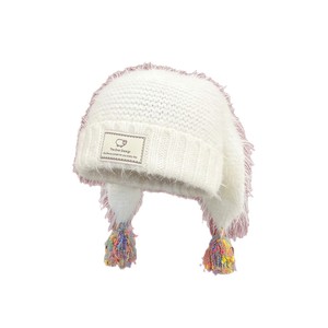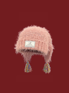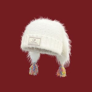2025新款可爱兔耳朵毛线帽子女秋冬保暖百搭仿兔毛彩色流苏针织