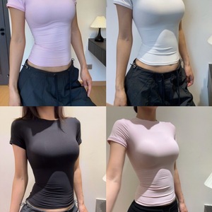 Skims同款2025夏季正肩短袖t恤女掐腰修身奶皮衣显瘦辣妹上衣女