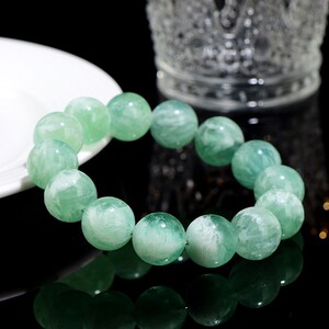 天然羽毛绿萤石圆珠手链 雪花羽毛萤石散珠手串 批发