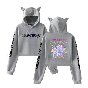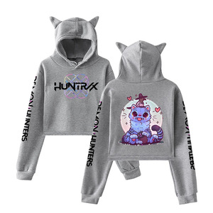 2025跨境新品KPop Demon Hunters欧美时尚猫耳朵露脐卫衣女
