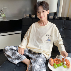 男童睡衣春秋款纯棉长袖2025新款儿童家居服青少年男孩中大童秋装