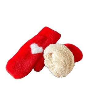 ins新年圣诞红色爱心手套女冬季加绒保暖时尚可爱漏指触碰韩版冬