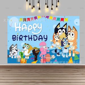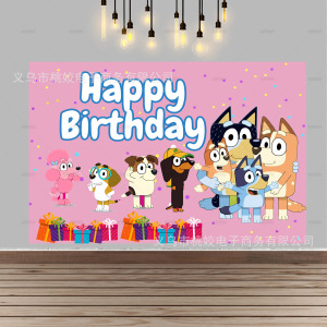 跨境亚马逊爆款布鲁伊儿童生日背景布乙烯基布派对装饰背景横幅