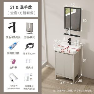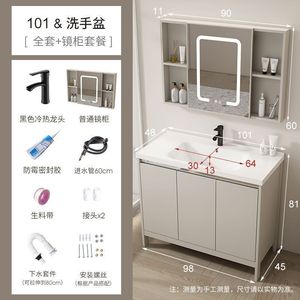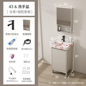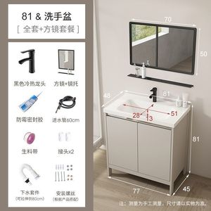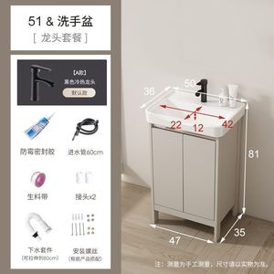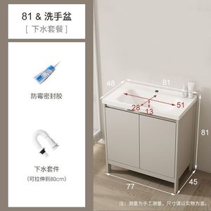 奶油风简约落地式太空铝浴室柜洗脸盆柜组合一体陶瓷洗手盆洗漱台