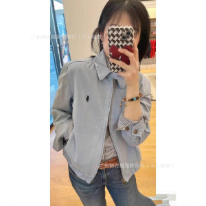 25跨境RL小马老干风经典翻领女款夹克斜纹布水洗外套 老干风短款
