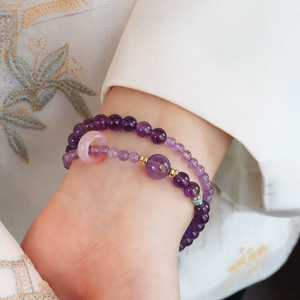 爆款上岸紫色双圈手串女轻奢设计薰衣草叠戴手链好运寓意闺蜜礼物