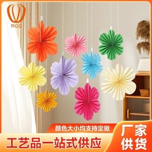 工厂直销花朵造型折纸扇多种颜色任意搭配生日派对聚会氛围吊饰挂