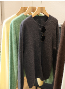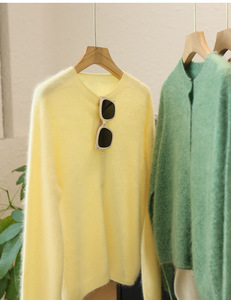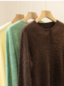 港米服饰/2025秋冬款230g加厚拉绒羊毛衫无缝圆领开衫毛衣女秋冬