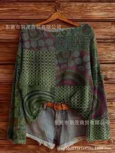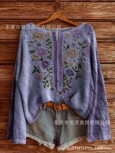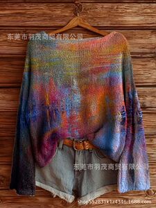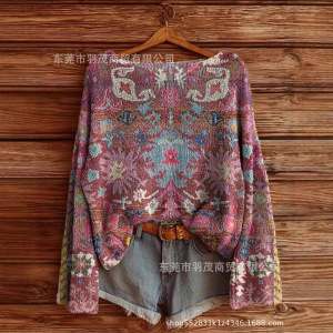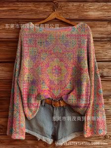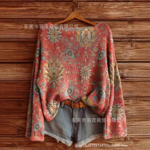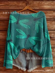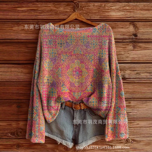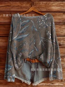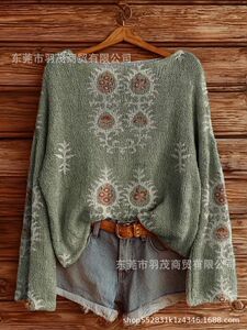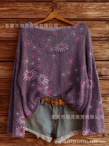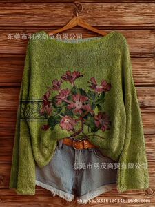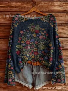 独立站新款高领卫衣仿毛衣 秋冬季碎花圆领宽松毛衣2