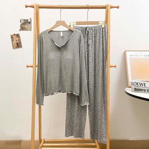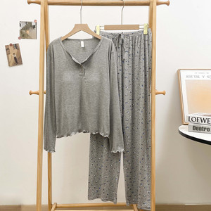 秋季新款睡衣女长袖长裤甜美小碎花带胸垫休闲大码宽松家居服套装