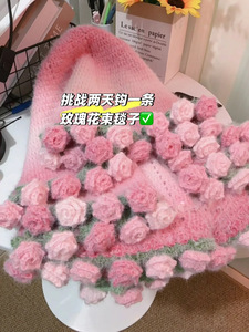 毛线钩针魔法球玫瑰花毯子手工编织diy材料包花束毯子礼物