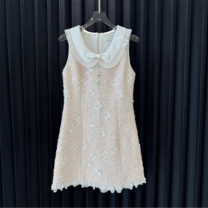 2025秋季新款名媛千金风重工亮片娃娃翻领小香风无袖连衣裙