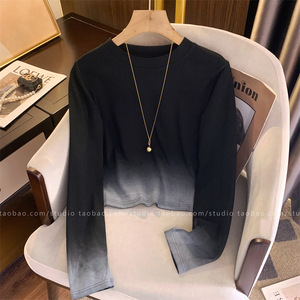 美式渐变设计感修身显瘦长袖t恤打底衫女秋冬季新款独特时髦上衣
