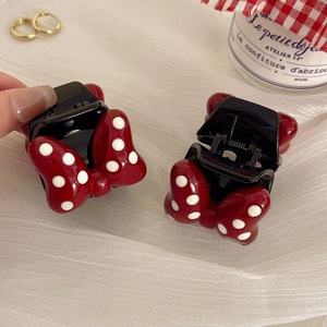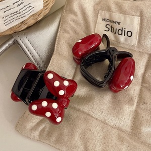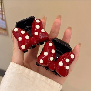 可爱红色波点蝴蝶结高马尾抓夹女2025新款发量多后脑勺发夹高级感