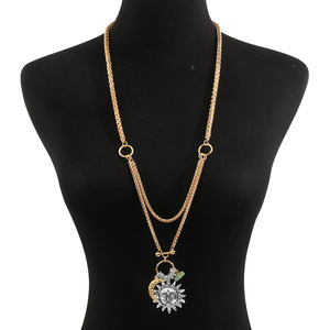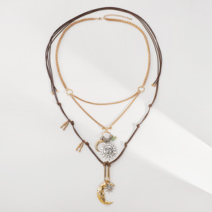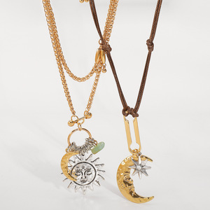 N12825个性潮流ZA太阳月亮吊坠项链复古几何日月叠戴编织长款项饰
