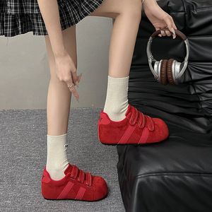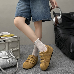 软皮休闲运动板鞋魔术贴德训丑萌卡皮巴拉大头内增高厚底勃肯鞋女