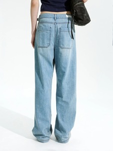 现货2025秋季新款韩国东大门L*WCLAS*IC宽松阔腿腰部可调节牛仔裤
