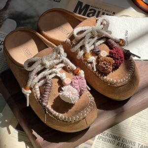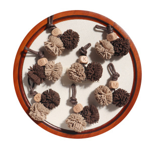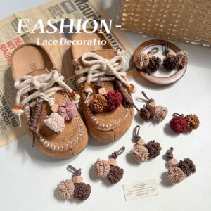 秋冬MIU系鞋上装饰木纹流苏花球鞋挂新款鞋扣德训鞋穆勒鞋DIY装饰