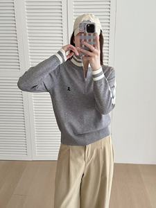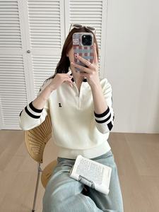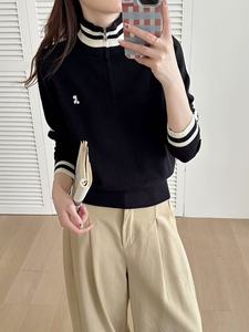 2025秋季新款韩系设计感撞色拉链半开高领气质百搭针织衫长袖上衣