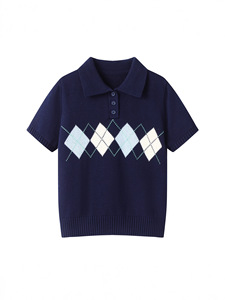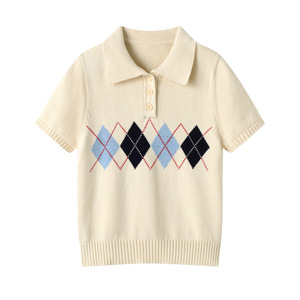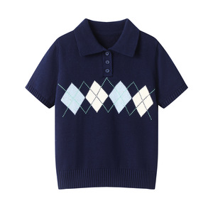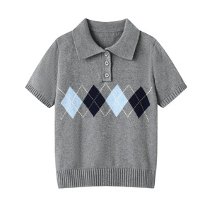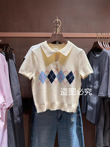 现货 2025秋季新款女装休闲学院风菱格短袖针织衫UYY950063