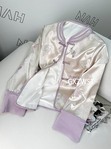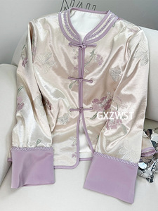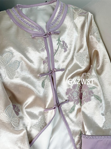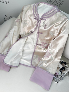 【现货】新中式国风刺绣盘扣外套女2025秋新款醋酸缎面高级感上衣