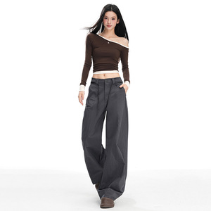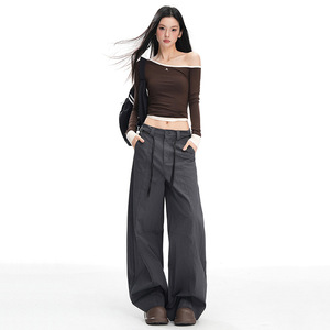 新中式阔腿休闲裤女秋季新款辣妹设计感宽松显瘦垂感拖地阔腿长裤