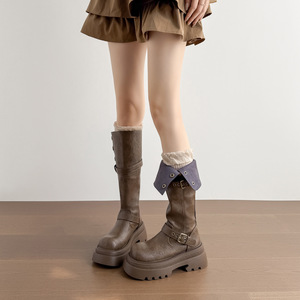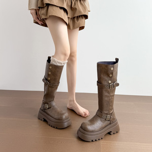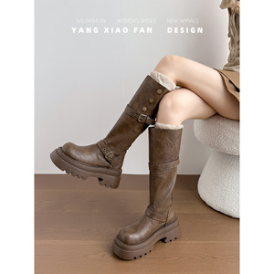 美拉德棕色长筒靴女2025春夏新款胖mm粗腿增高骑士靴小个子高筒靴