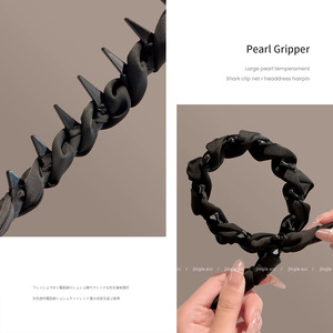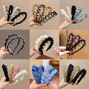 显脸小波浪缎面复古发箍时尚齿梳法式珍珠头箍高级感洋气夏日发卡