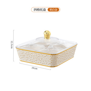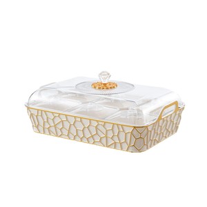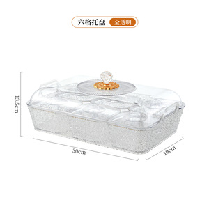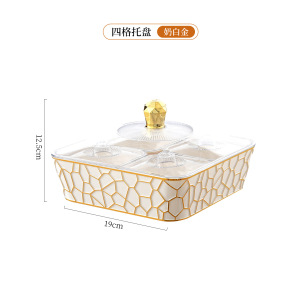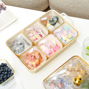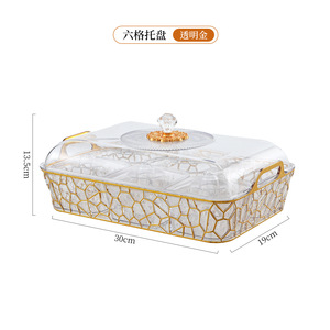 带盖PET塑料手提果盘 透明金边带内盒加厚分格盘子下午茶派对托盘