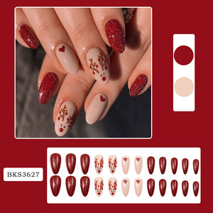 跨境欧美圣诞节红色闪粉鹿头穿戴甲甲片穿戴式指甲贴片美甲批发