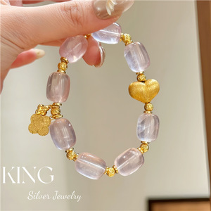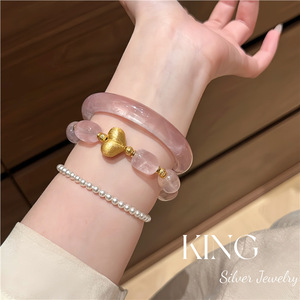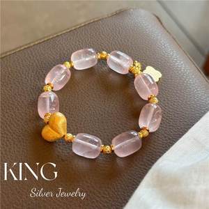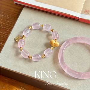 暖阳霞光手串 | 马料粉水晶拉丝屁桃新中式纯银珠串