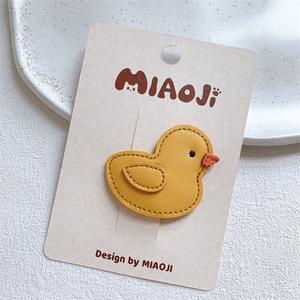 儿童可爱卡通小鸭子奶茶发夹女童皮质水果发卡碎发BB夹侧边刘海夹