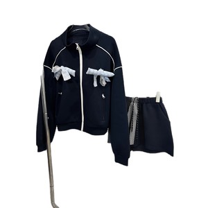 2025年早秋新款蝴蝶结高校女棒球服外套+短裙套装