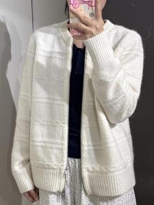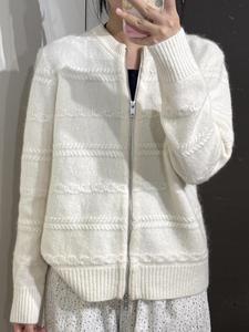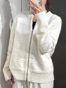 早秋穿搭上衣白色慵懒毛衣开衫外套女秋冬拉链宽松别致外搭针织衫